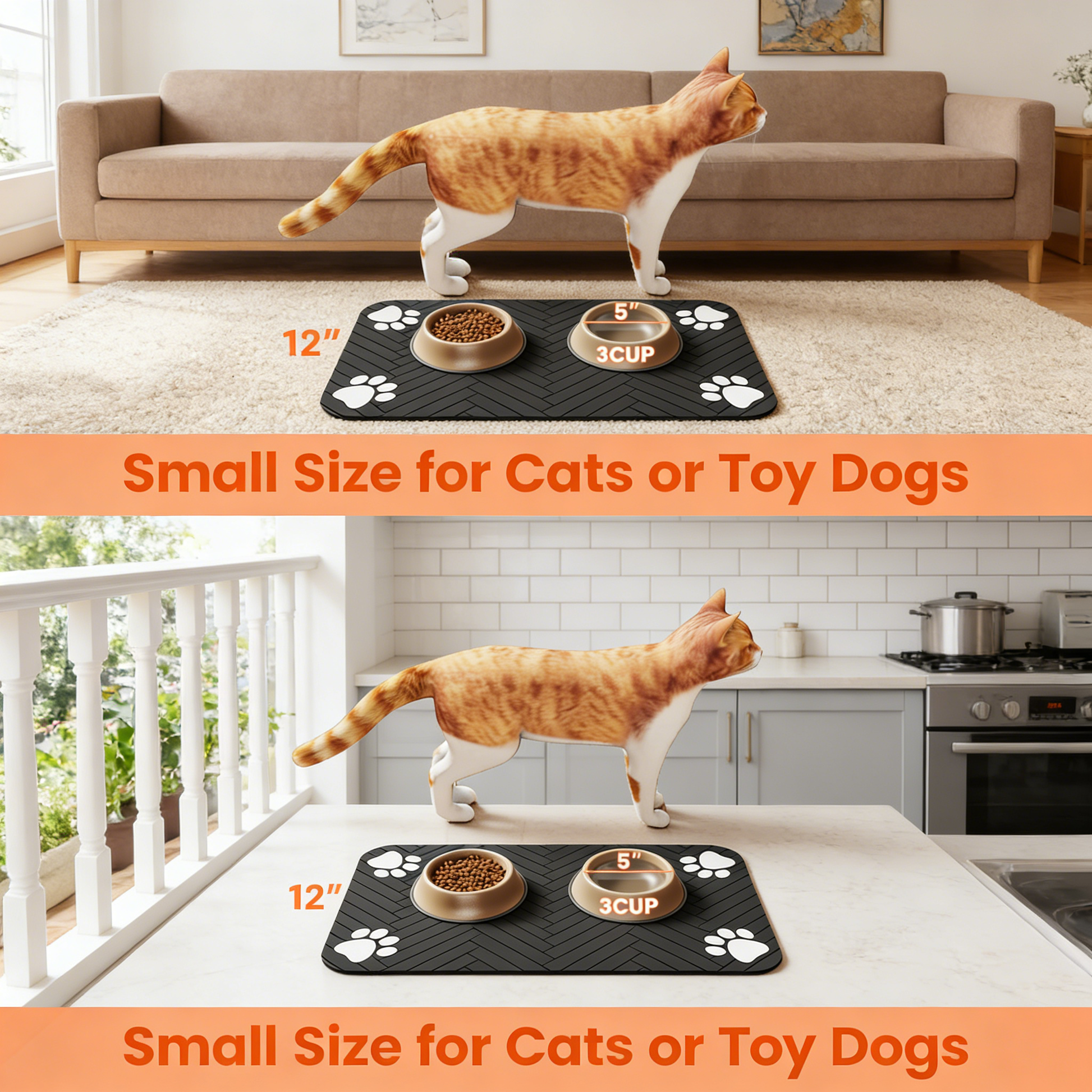 Pet-Friendly & Durable: Crafted for durability, this pet food mat is tear-resistant and safe, preventing your pets from chewing on it. The soft, comfortable design ensures a pet-friendly environment.